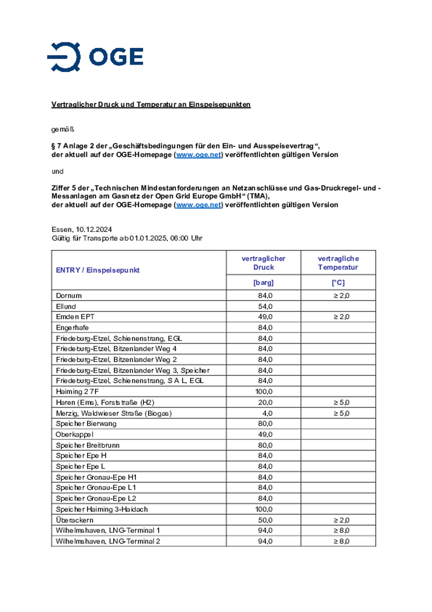 Die TMA umfassen neben den Netzanschlussbedingungen auch die verbindlichen Anforderungen sowie Ausführungsempfehlungen zur sicheren, effizienten und wirtschaftlichen Umsetzung technischer Regeln für …Errichtung, Änderung und Betrieb von Gas-Druckregel- und -Messanlagen am Gasnetz der Open Grid Europe GmbH. Stand 01.10.2024