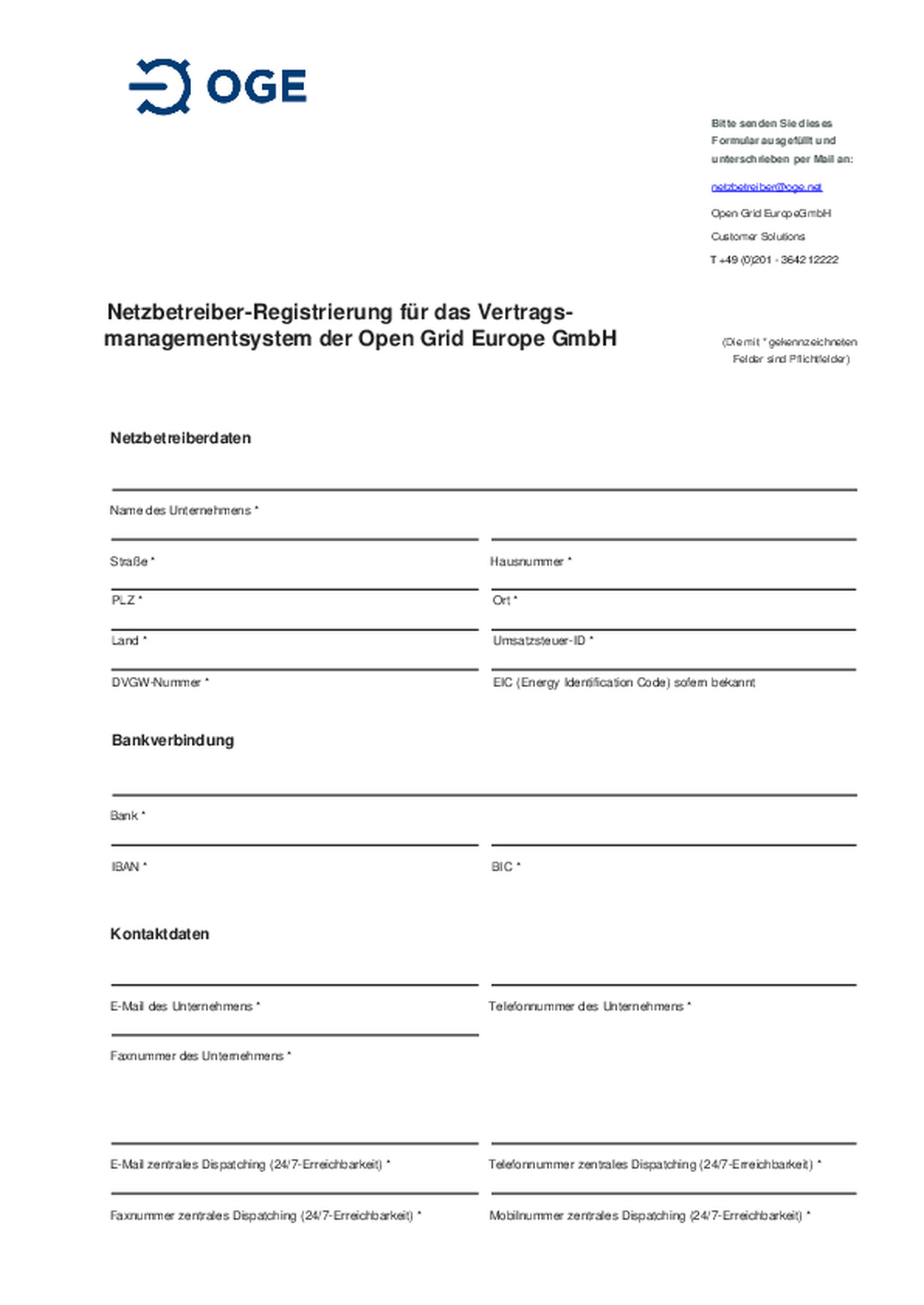 Das ausgefüllte Formular senden Sie bitte an: netzbetreiber@oge.net