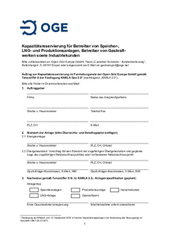 Open Grid Europe bietet seinen Transportkunden ein Formular zur effizienten Abwicklung von Anfragen gem. Tenorziffer 8 der Festlegung KARLA Gas 2.0 an. Durch die Verwendung des Formulars soll …sichergestellt werden, dass Open Grid Europe zeitnah über sämtliche Informationen verfügt, die für eine zügige Bearbeitung Ihrer Anfrage benötigt werden.