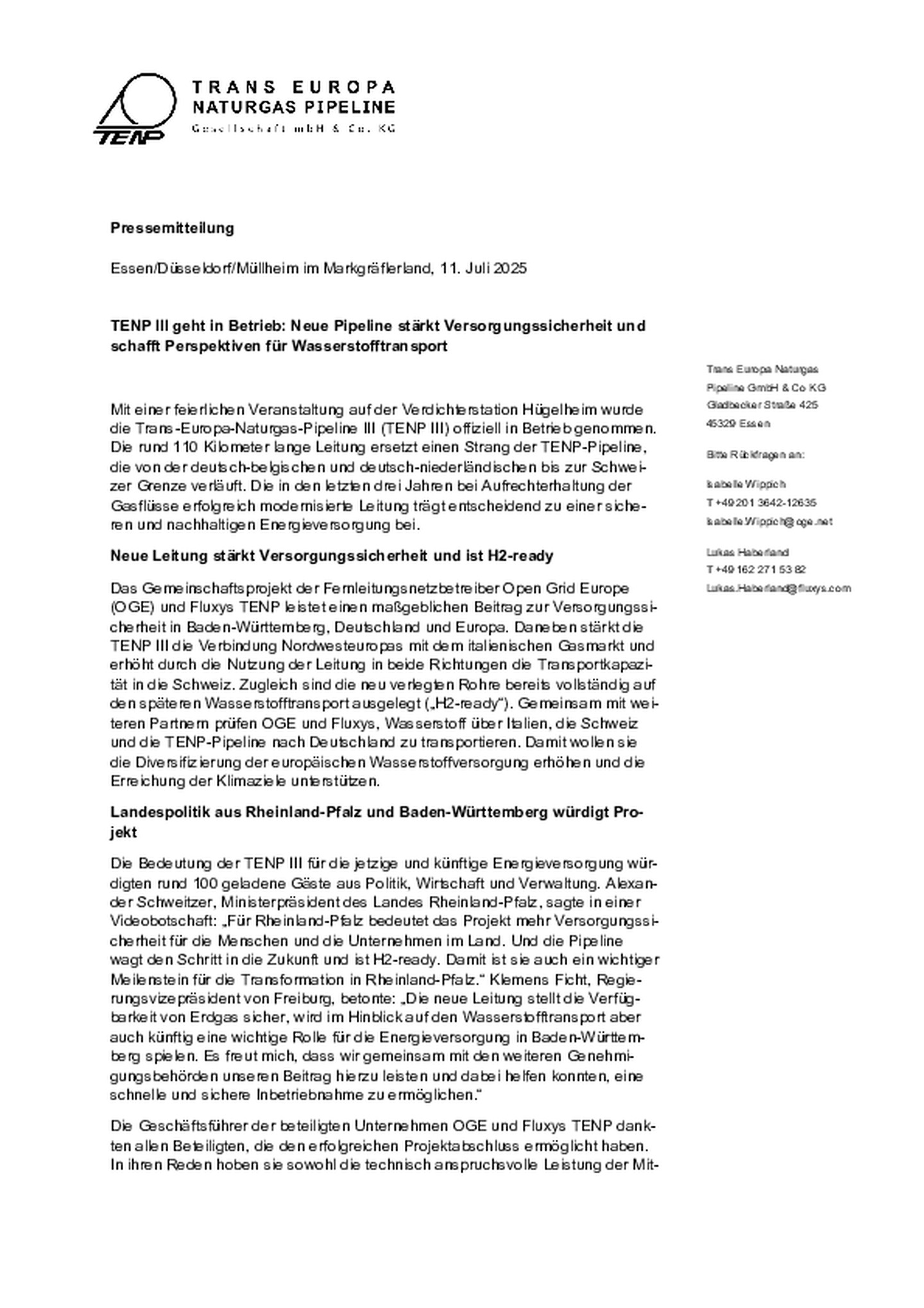 Neue Pipeline stärkt Versorgungssicherheit und schafft Perspektiven für Wasserstofftransport.