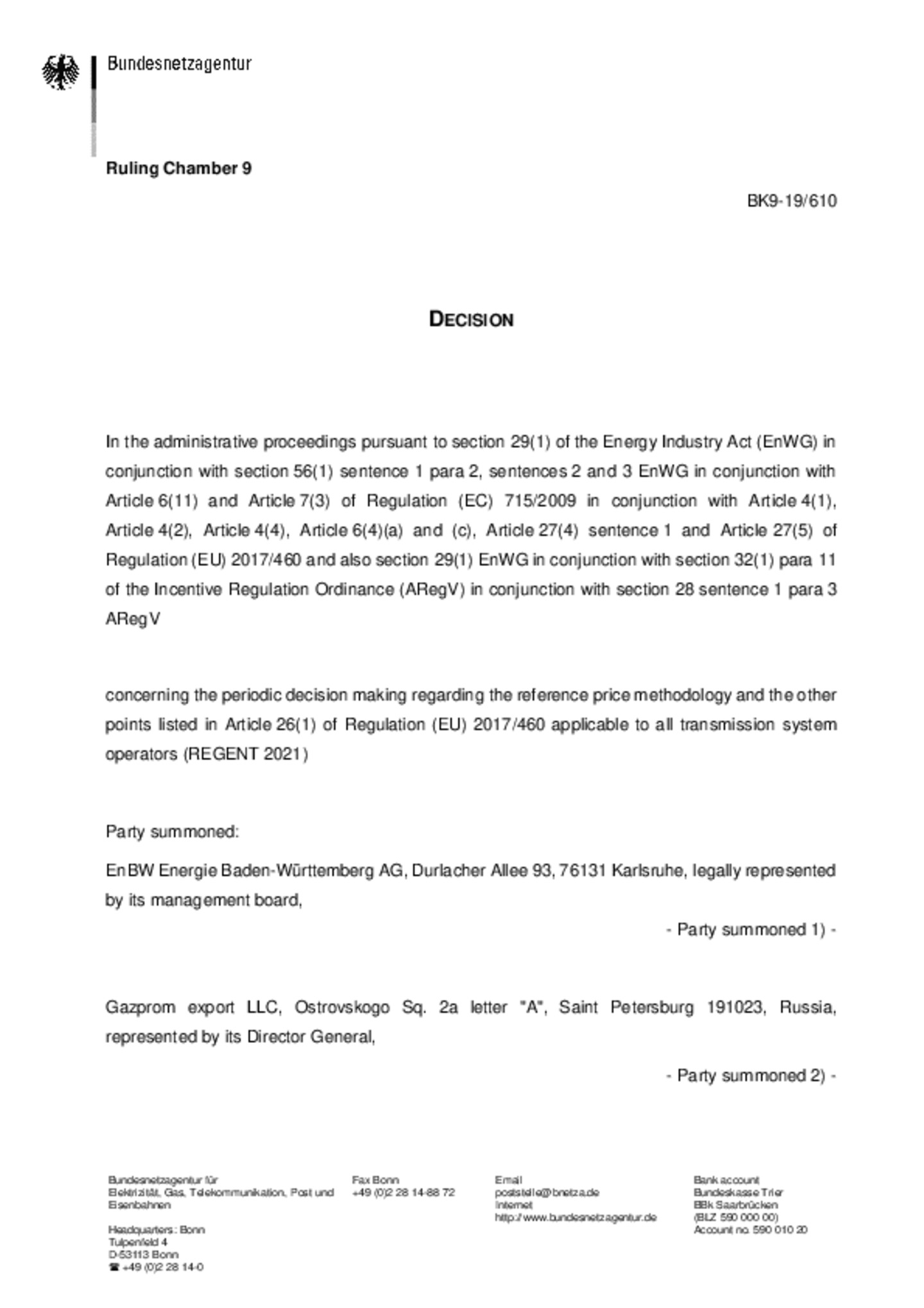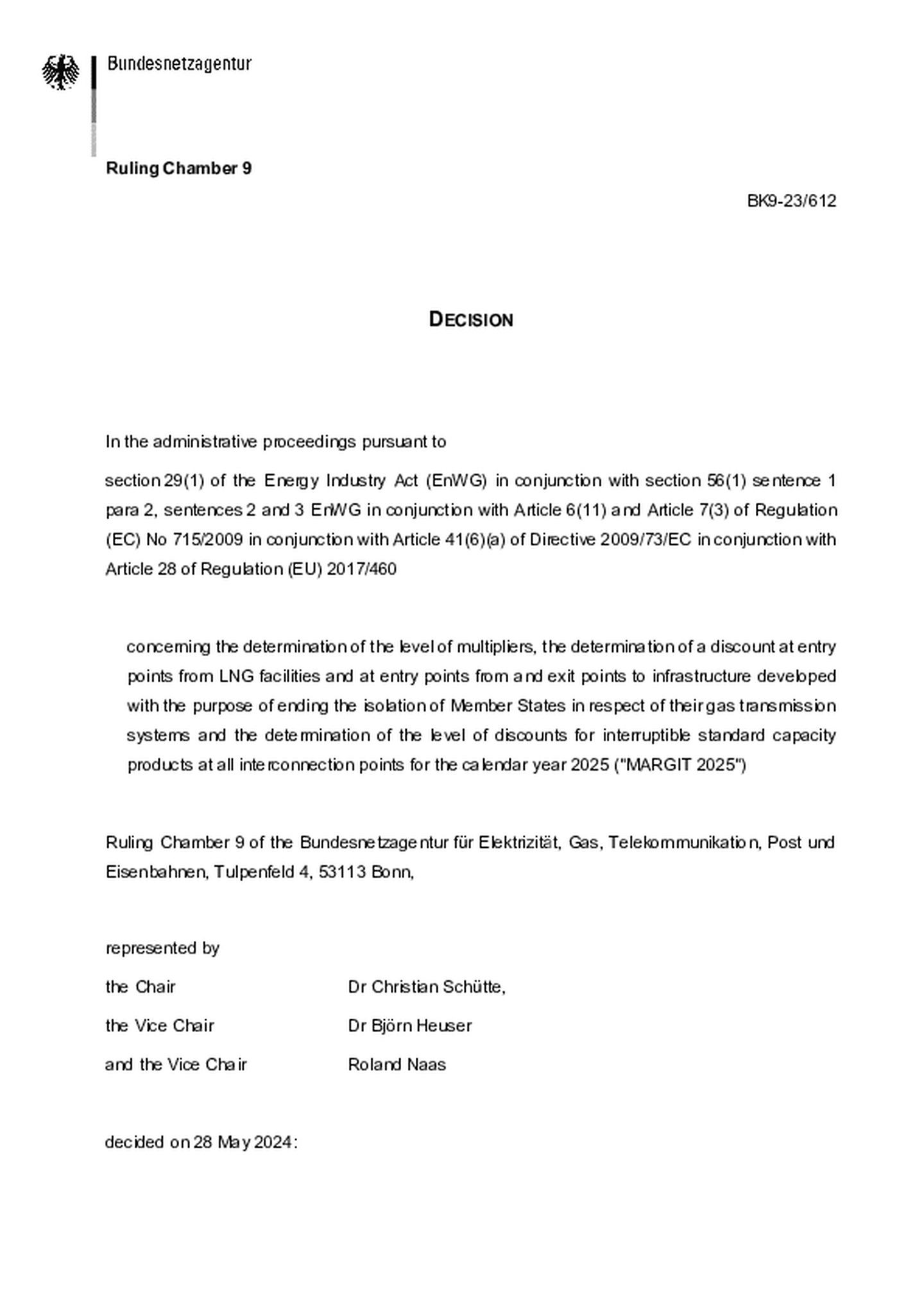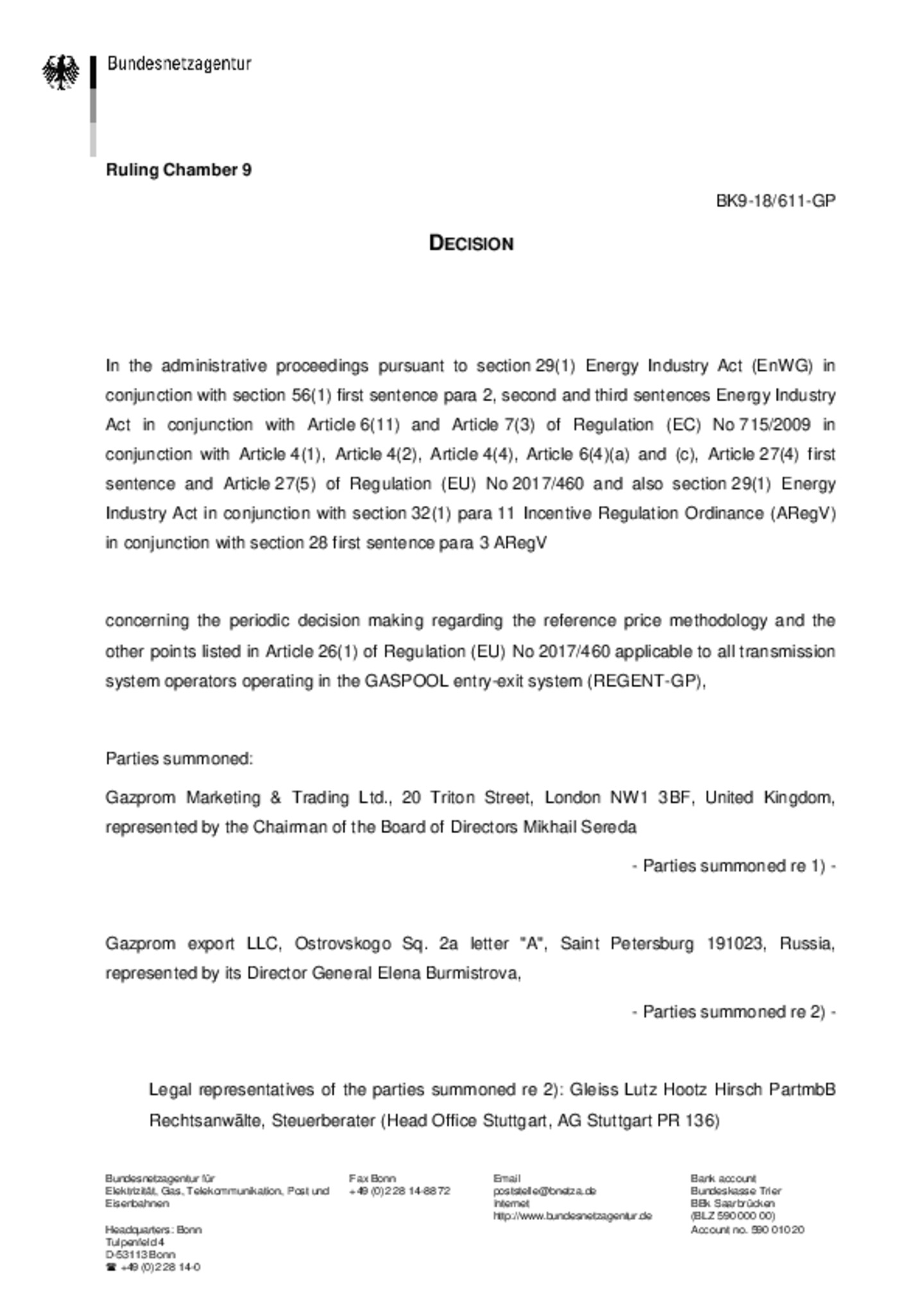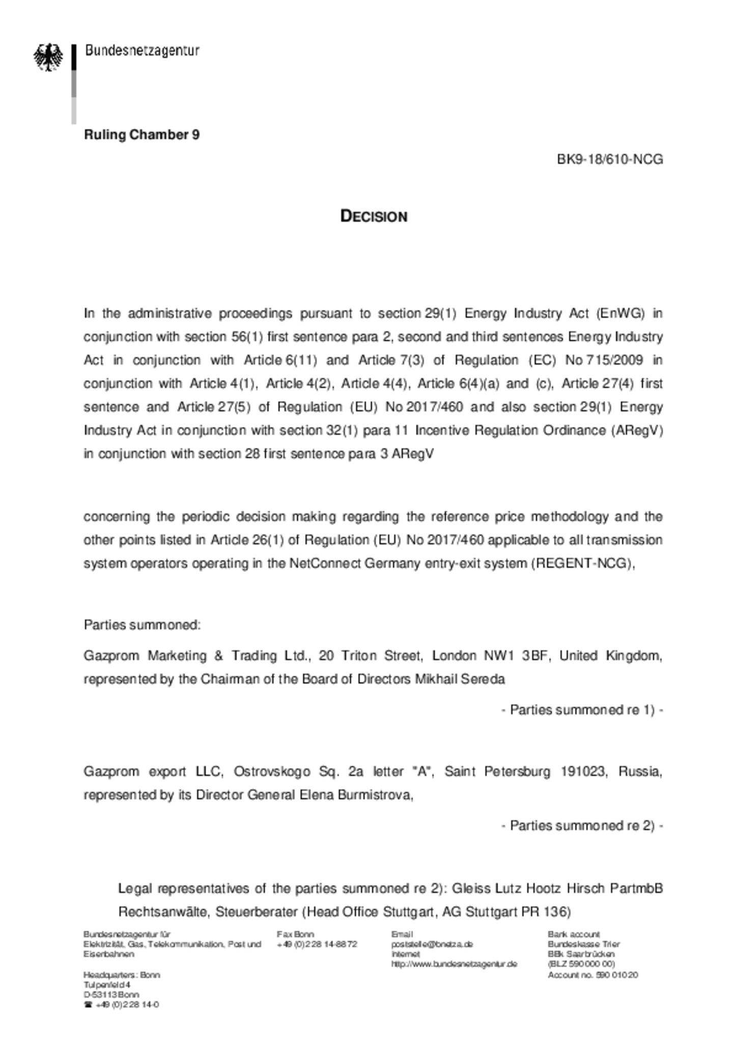Publication by Open Grid Europe GmbH according to the network code on harmonised transmission tariff structures (Regulation (EU) 2017/460)