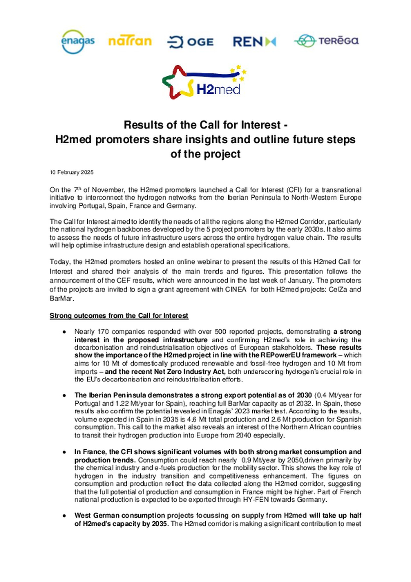 H2med projects secures CEF Funding for over 35 million euro, opening a new chapter for the Southwestern Hydrogen Corridor