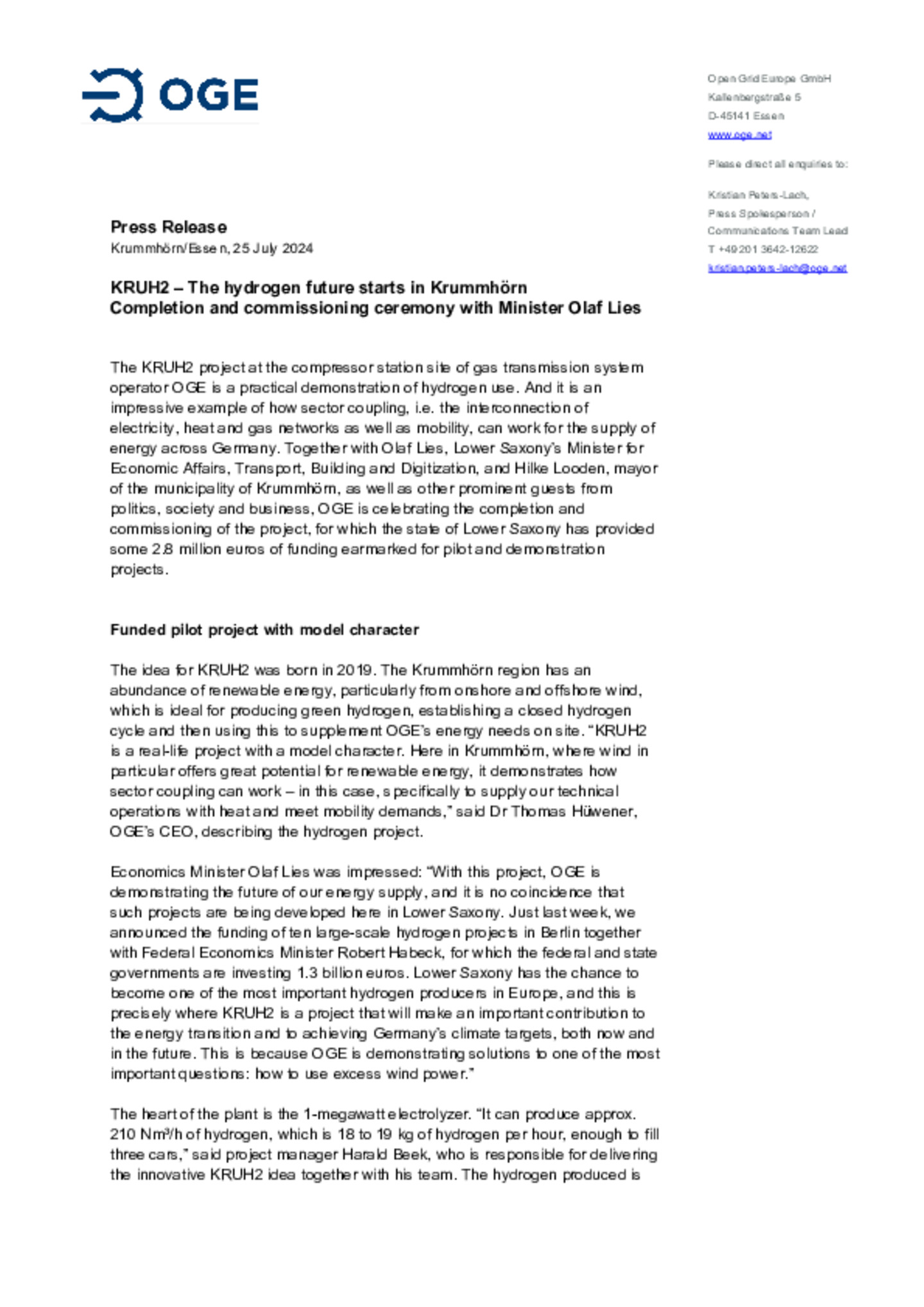 Press photo: KRUH2 – The hydrogen future starts in Krummhörn